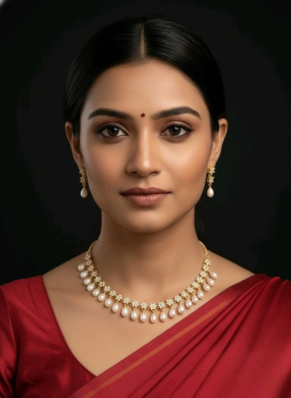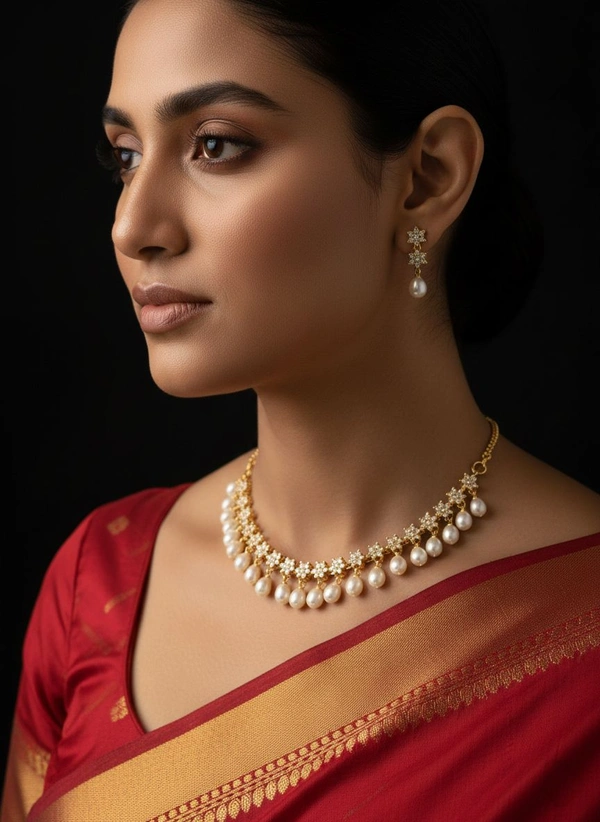 Drop Pearl Golden Necklace - PN658